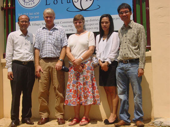 Jock and Jill Struthers with Mr Nget Thy, CCPCR Executive Director, Ms Ny Channary, Shelter Manager and Mr Sek Sophal, Program Manager.