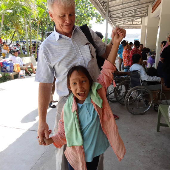 In June 2012, Jock Struthers and wife (nurse) Jill rounded up a young girl and three young women from villages in Svay Rieng, Banteay Meanchey and Odtar Meanchey Provinces and brought them to Phnom Penh where they were successfully treated by the French Surgical team who performed 9 MEC operations including the little girl Chantrea (pictured) during their six monthly, one week visit.