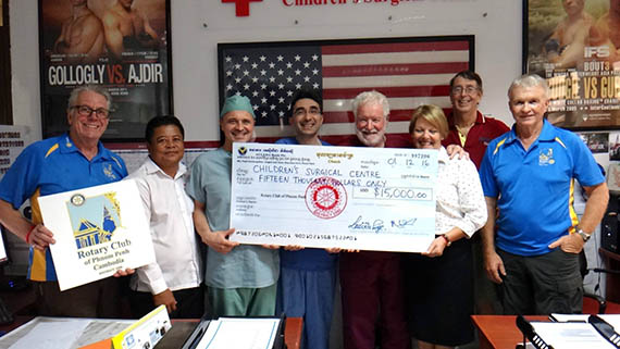 The Rotary Club of Phnom Penh presents CSC Hospital with a cheque for $15,000 in December 2016. The payment is towards hospital surgical costs for MEC patients. Funds raised by the club are also used to fund patient identification, counselling and logistical support services.