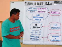 This was achieved by the recruitment and training of three task force teams of I-Kiribati people who visited every island of the Gilbert Group over a three month period, meeting with nearly every village, community groups and all island councils.